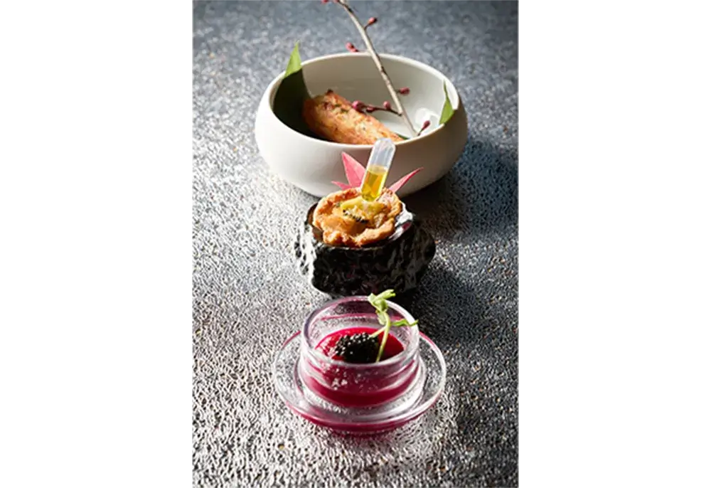 フランス産を中心としたクラシックなワインはもちろん、時には沖縄のクラフトジンや、長期熟成された古酒(クース)など、既成概念にとらわれないユニークなペアリングをご用意しております。